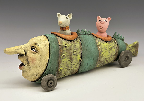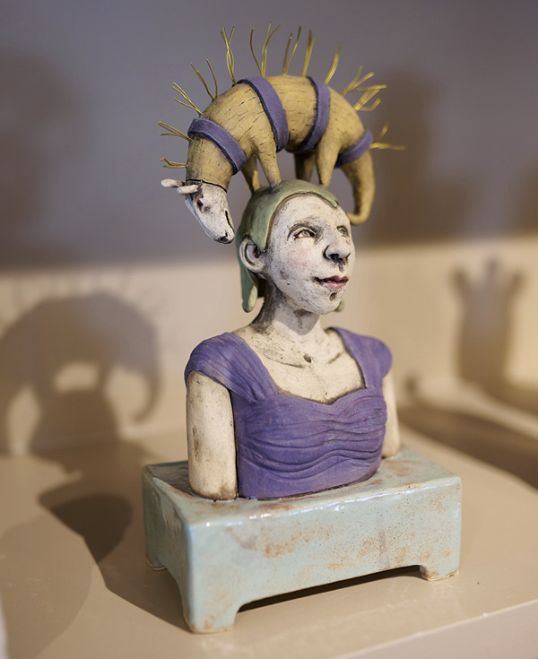 That’s when things clicked. I remembered a time in my past when I loved sculpting doll heads from polymer clay, and I started making heads again. At first, they were all salt-and-pepper shakers because the studio owner said “no dolls,” and everyone else was making functional ware. I felt like I had to fit in, but a friend encouraged me to break free of those limitations, saying, “They don’t have to be anything—they’re sculptures.” That was a turning point for me.