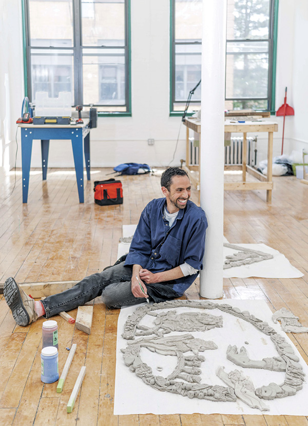 I am currently reading the Satipatthana Sutta, an ancient Buddhist discourse; lots of Allen Ginsburg poems; and a book about internal family systems, a psychotherapeutic modality. Anything by Murakami usually puts me in the right mindset to go to the studio. I try to make it to New York City and walk around the galleries in Chelsea, Tribeca, etc., whenever I can, and get excited about all the diversity in approaches to contemporary art. Any museum is typically very nourishing to me. Seeing the Philip Guston retrospective at the Louisiana Art Museum in Copenhagen, Denmark, and the Maurizio Cattelan retrospective at the Guggenheim in New York, New York, were two particularly memorable shows that continue to fuel me. When I see my friends’ work in Providence, Rhode Island, I get pumped to head back to the studio.