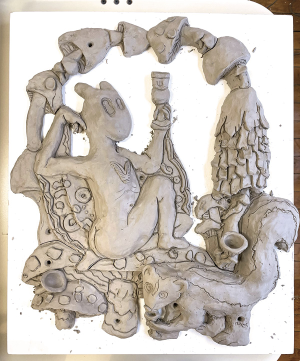 Before I started working with ceramics, I spent a few years making large figurative paintings in acrylic. I was very excited about the new skill I was developing, and told my Zen teacher, Joko Beck. She replied, “The painting paints itself.” Remembering this helps me get into the mindset that art is something happening, rather than something I am making happen. I am a part of the process, watching the universe unfold in the studio.